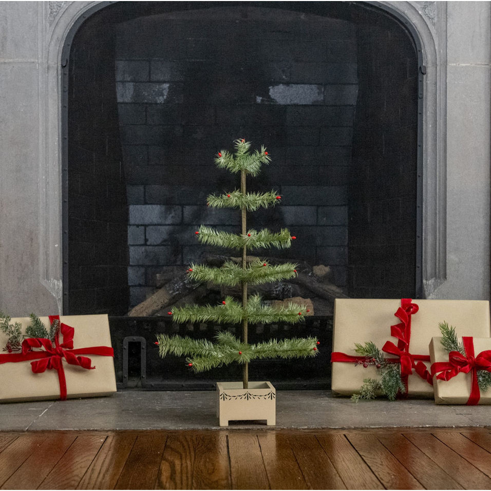 Introduce the joy of Christmas into your home with the 24" Green Feather. This compact Christmas decoration can serve as a centerpiece or accent, adding a festive touch to any room.