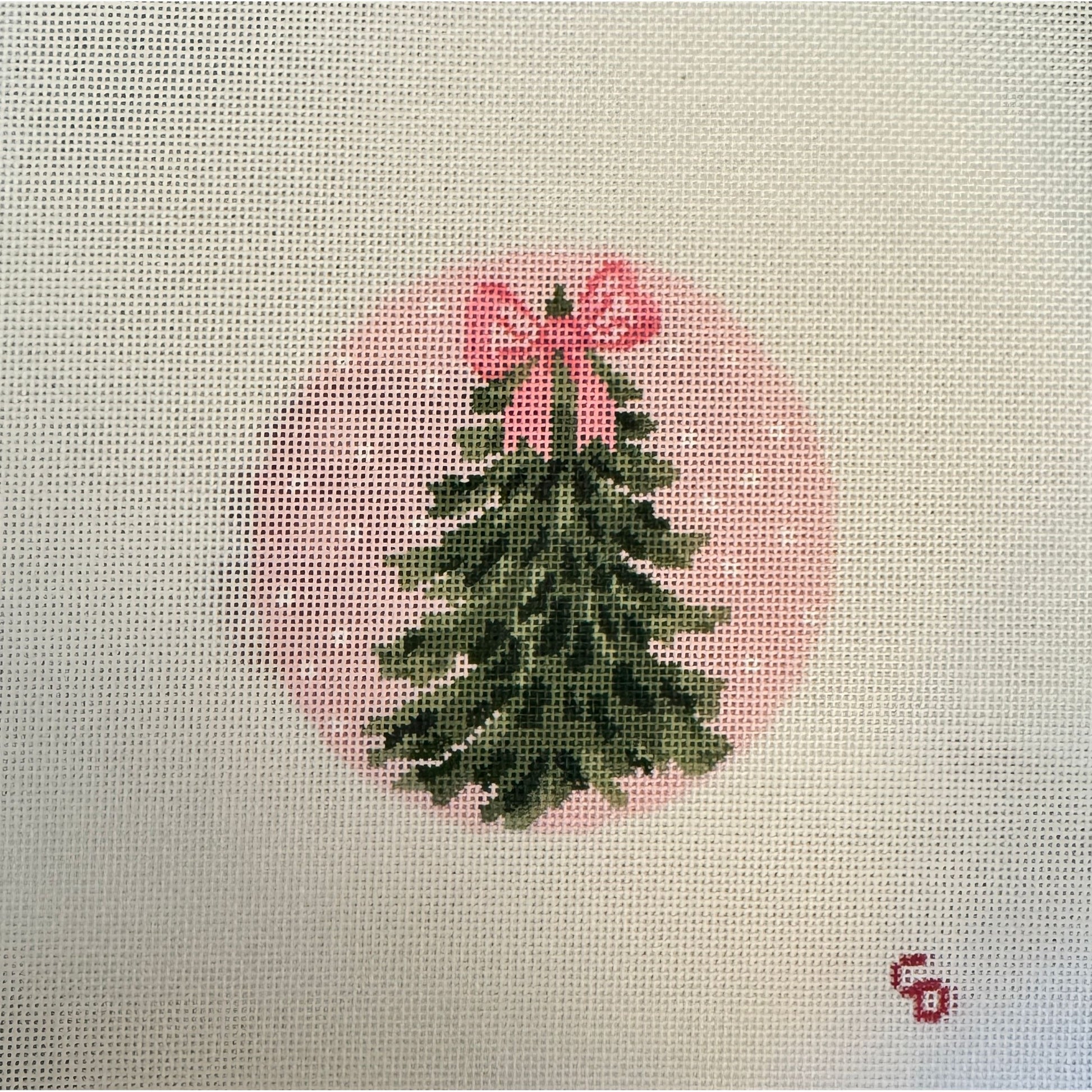 Cotswold Co Designs | Hand Painted Pink Christmas Tree Needlepoint Canvas