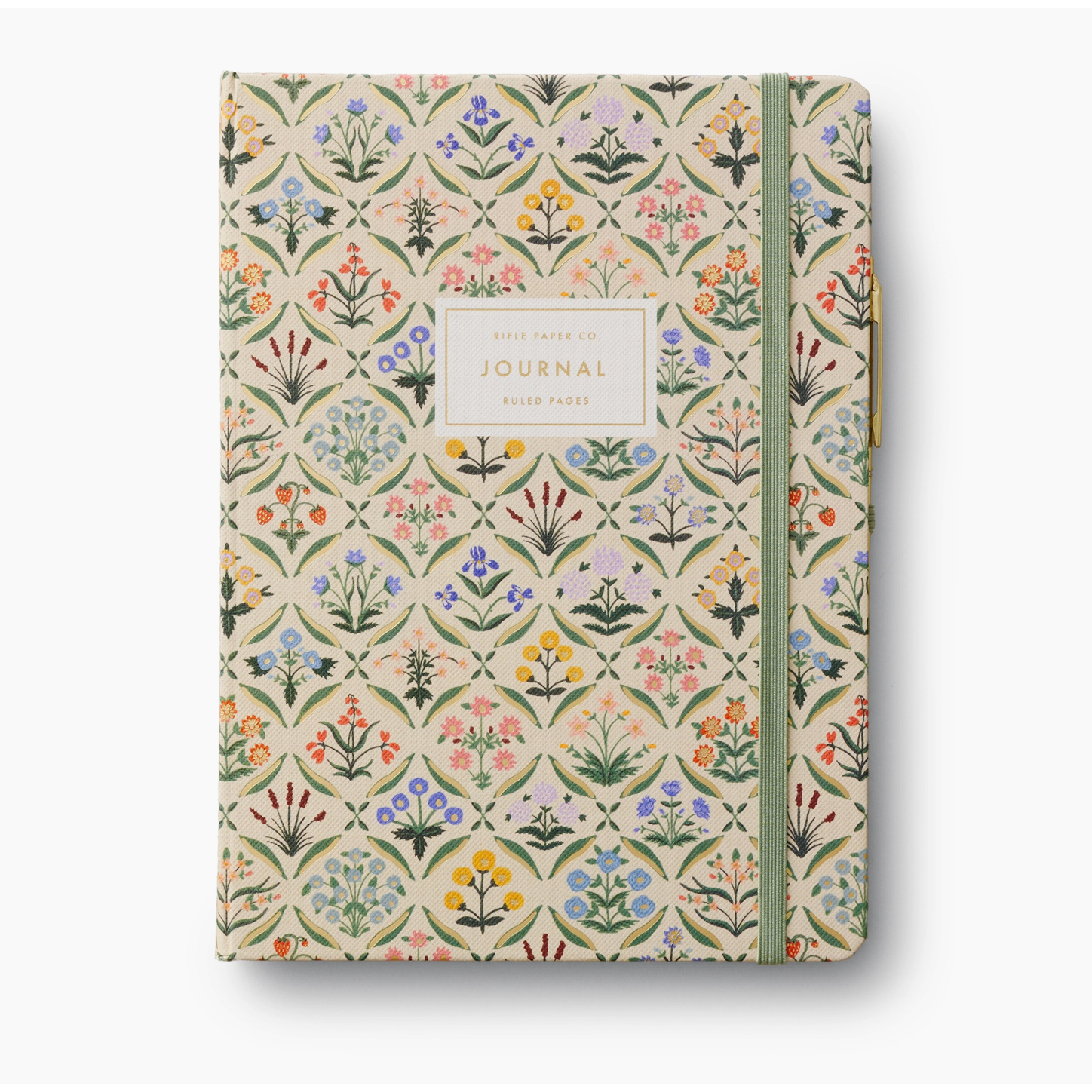 Designed for note takers and journalers, this hardcover journal comes with a gold pen with black ink, and features 144 ruled pages, an elastic band, and a pocket for extra storage.
