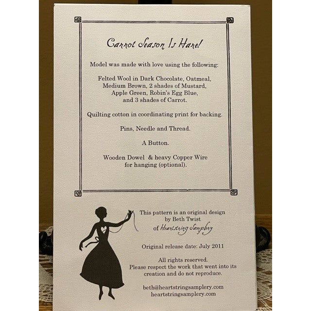 Heartstring Samplery ~ Carrot Season Is Hare Wool Applique Pattern