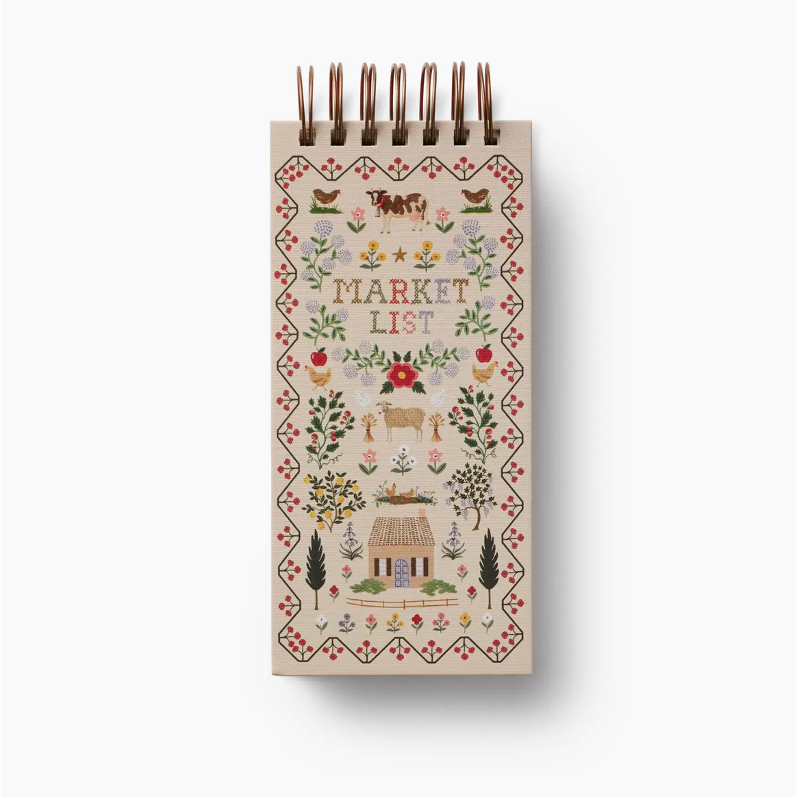 Organize your grocery list with this spiral-bound market pad, featuring 65 lined, perforated sheets and sweet, farmyard-inspired illustrations.