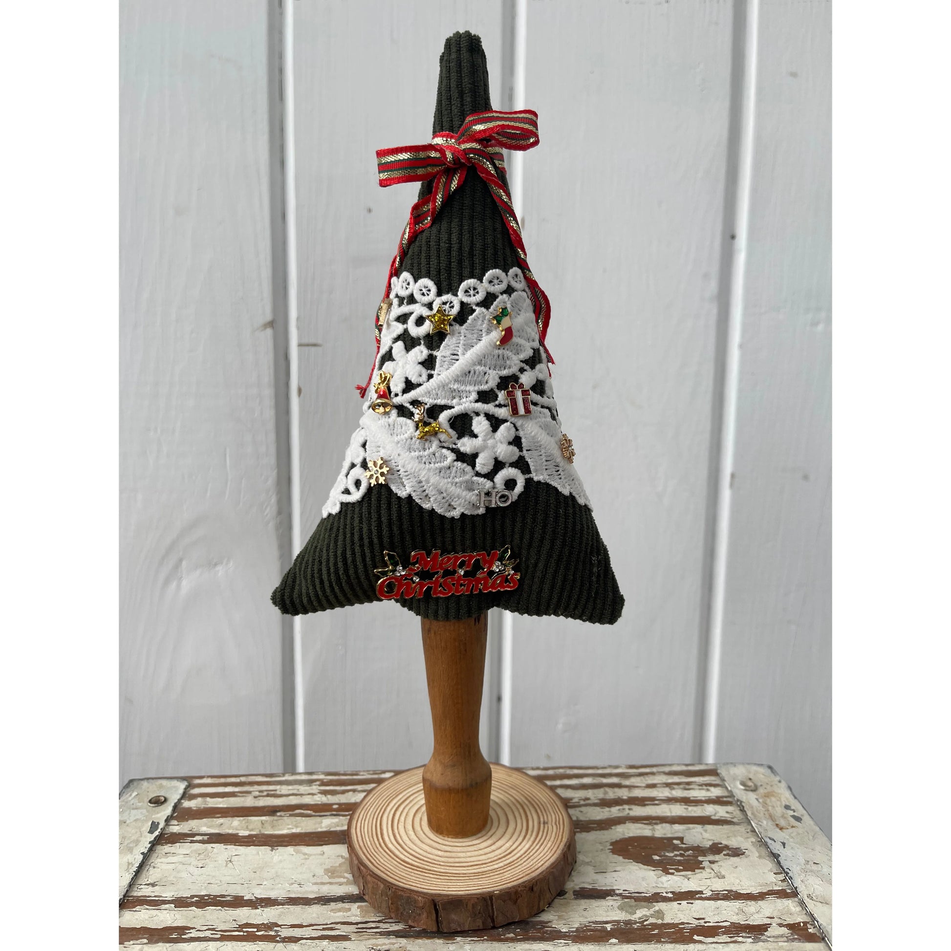 Paxe's Designs ~ Green Corduroy Tree with Lace and Charms