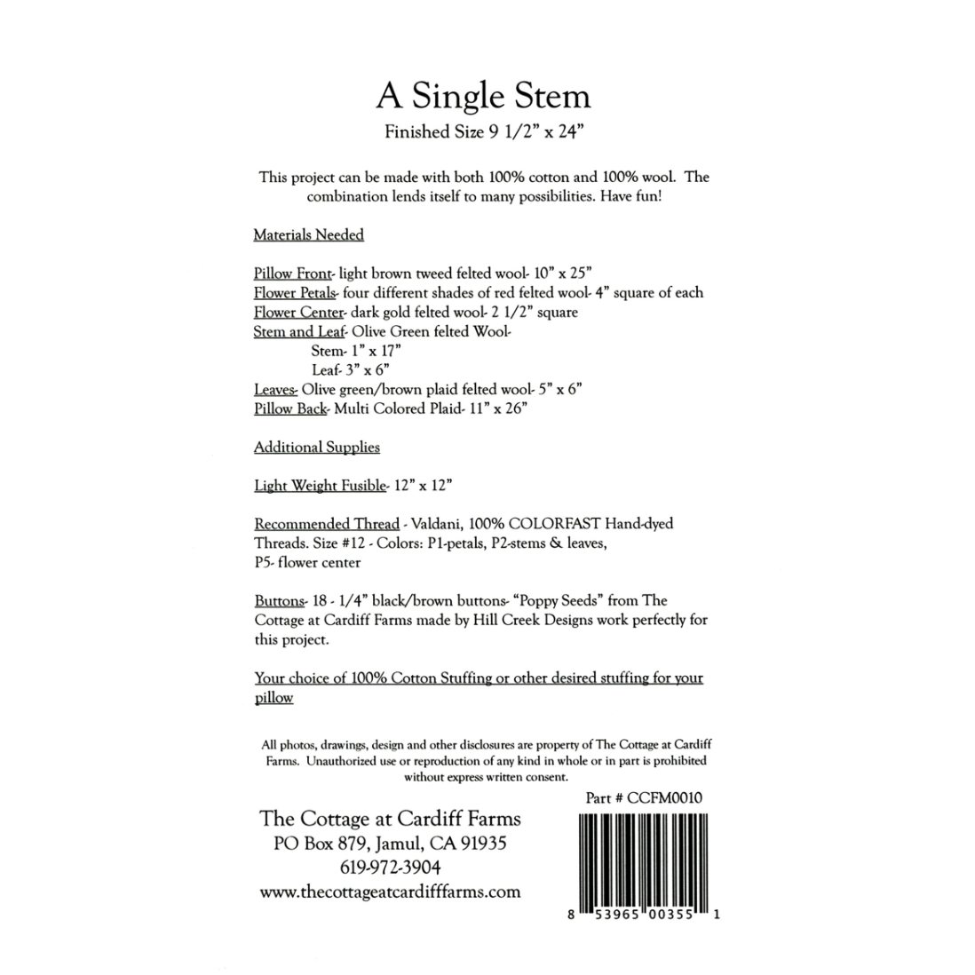The Cottage at Cardiff Farms ~ A Single Stem Pillow Pattern