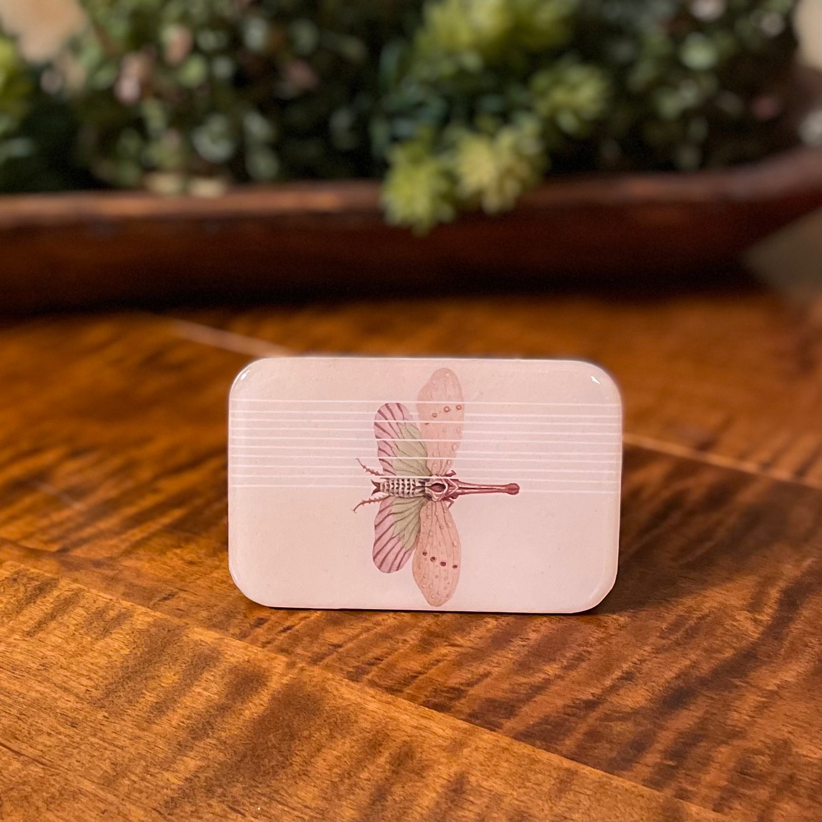 This handy slider tin features a vintage sheep print covered in hand-poured resin. This tin is the perfect compact size to stow in their purse or project bag but is also large enough to store all of their small needlework notions! The best part is that the bottom of the tin is magnetic, so everything will stay put when you slide it open.