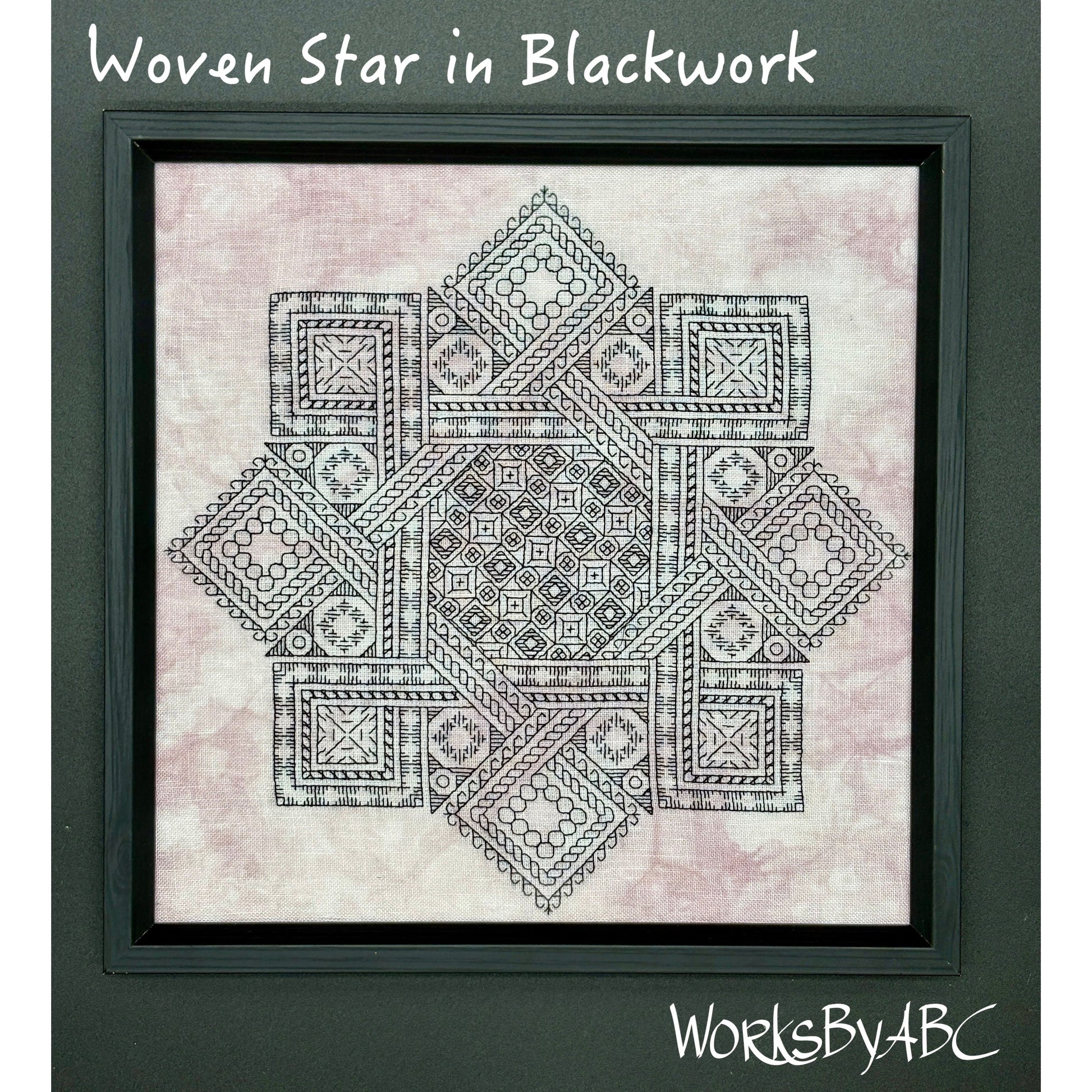 Model stitch on 32 count Strawberry Latte linen from Grace Notes Fabrics using black DMC