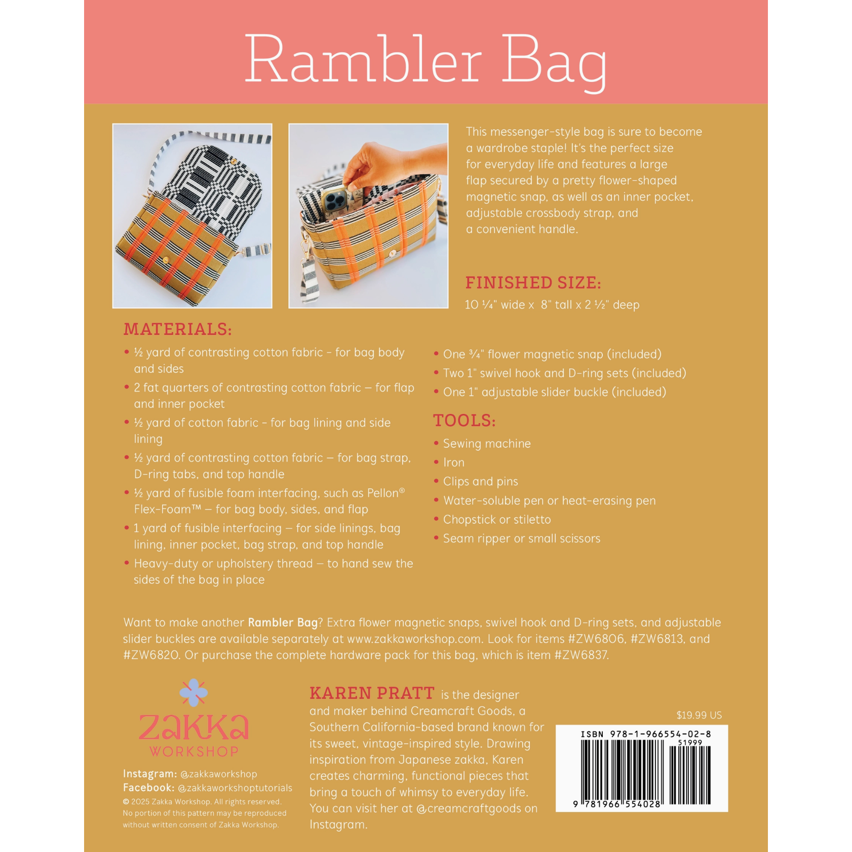 Includes instructions, full-size pattern sheet, two rose gold 1" swivel hooks and D-rings, one rose gold 1" adjustable slider buckle, and one rose gold 3/4" flower magnetic snap.